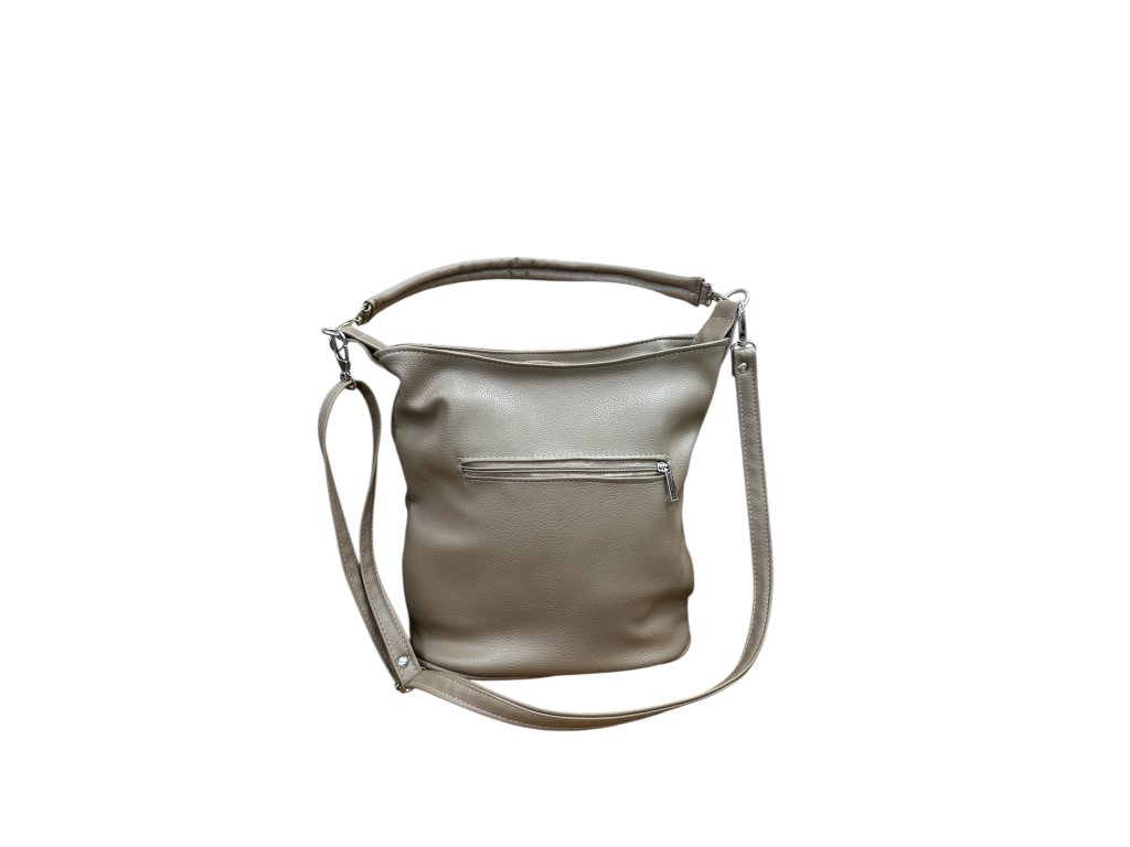 Tato prostorná kabelka v univerzálním béžovém odstínu kombinuje strukturovaný povrch s jemným perlovým leskem, díky kterému působí žensky a elegantně. Je vyrobená ze syntetické napodobeniny kůže, která se snadno udržuje a zároveň nabízí příjemnou měkkost.