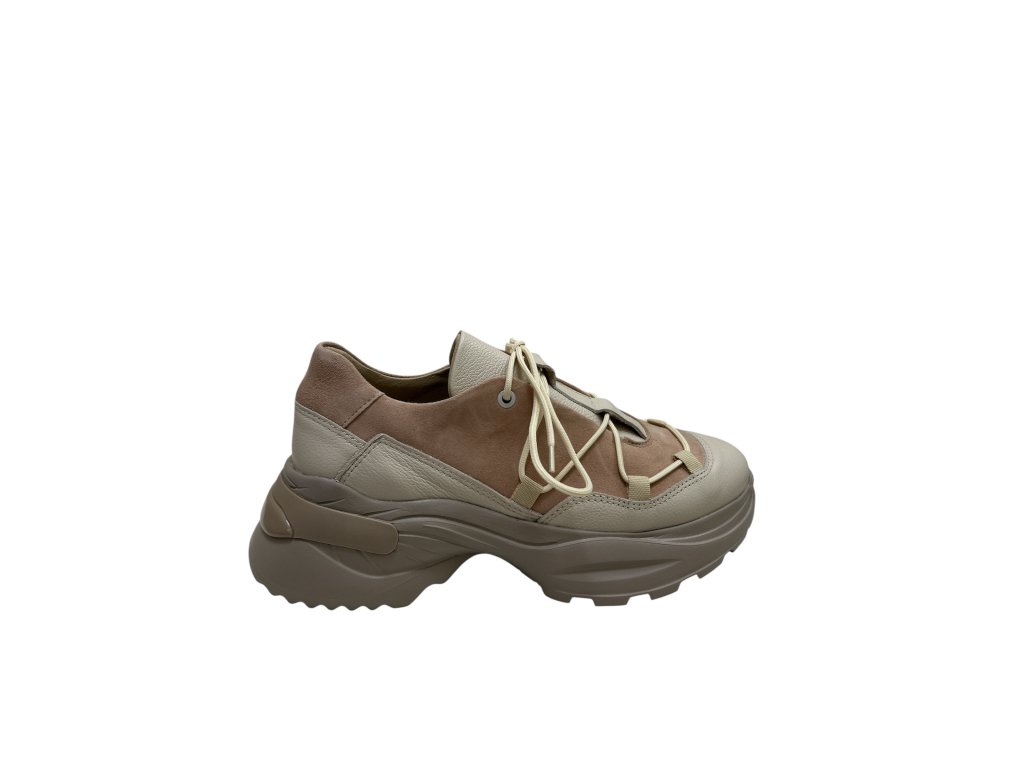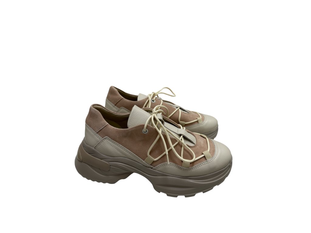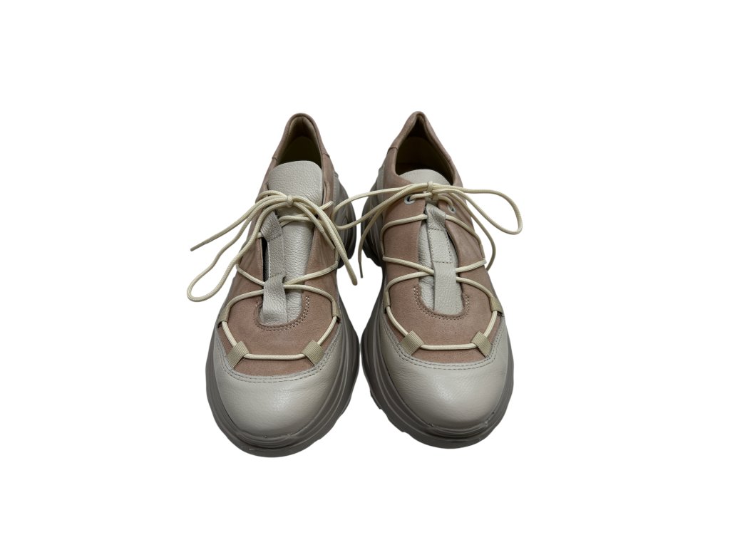 Moderní béžovo-růžové tenisky z kombinace kůže a semiše s originálním vázáním. Stylový vzhled, komfort a lehkost pro každý den.