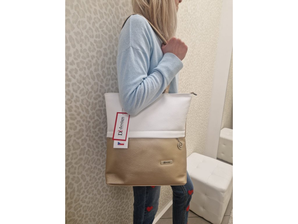 Elegantní a stylová kabelka v bílo-zlatém provedení.