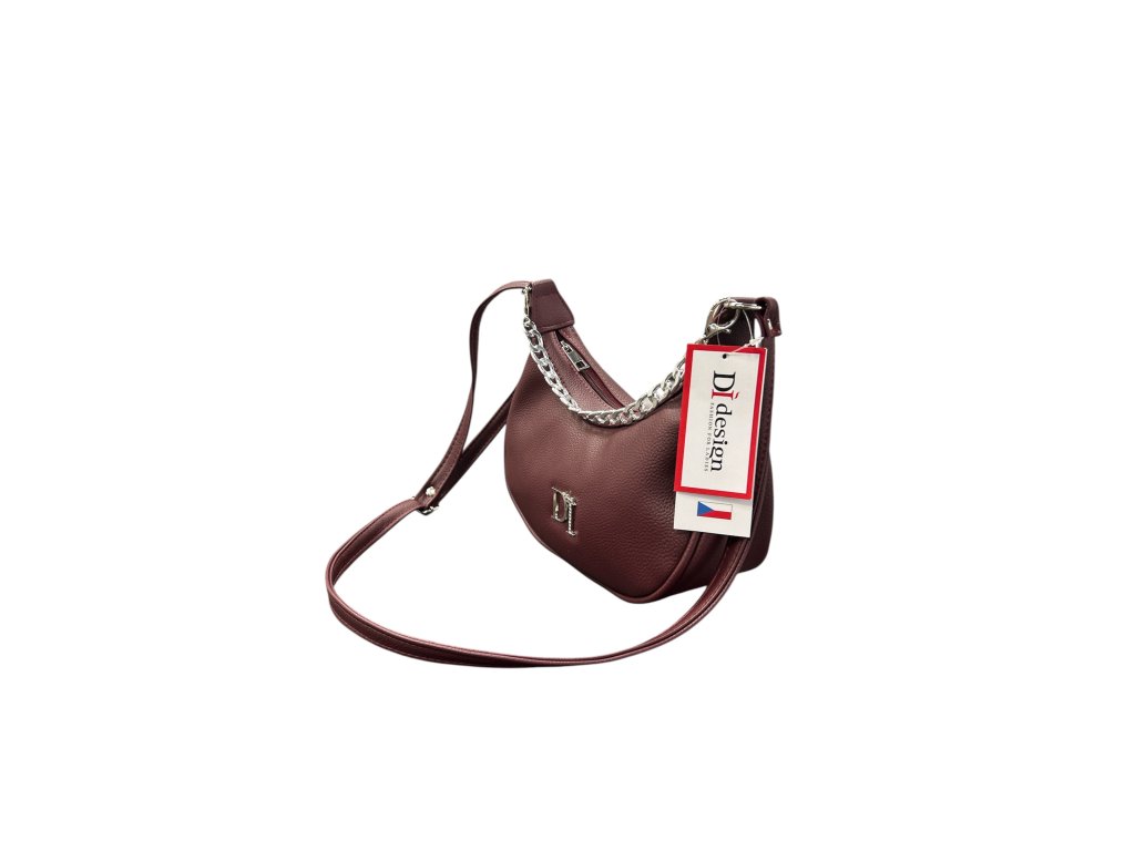 Stylová dámská kabelka v elegantním oblém tvaru zaujme na první pohled dekorativním řetízkem a jemným logem DI. Ideální doplněk pro každodenní nošení i večerní outfit.