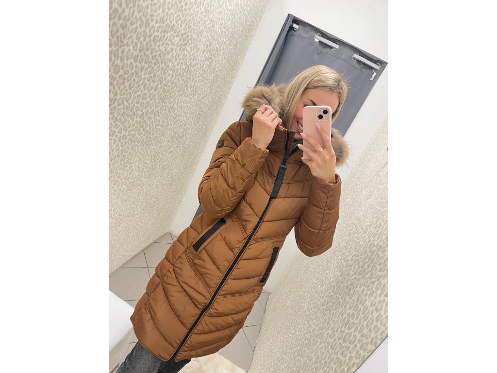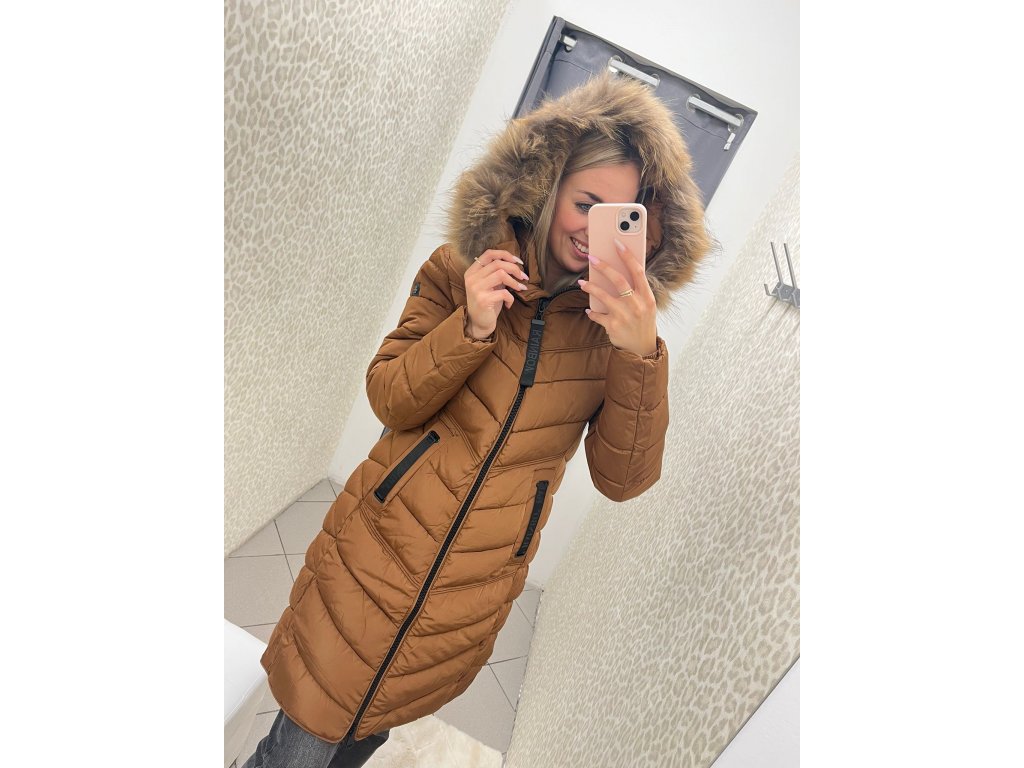 Elegantní dlouhá bunda ve skořicové barvě, která je tuto sezónu hit mezi barvami. Krásně padnoucí a střihem dokonale zpracovaná zimní bunda. Díky kvalitnímu dutému vláknu dokonale zahřeje v zimních chladných dnech. Vzhledem k vysoké poptávce vás prosíme o zaslání dotazu ohledně dostupné velikosti.