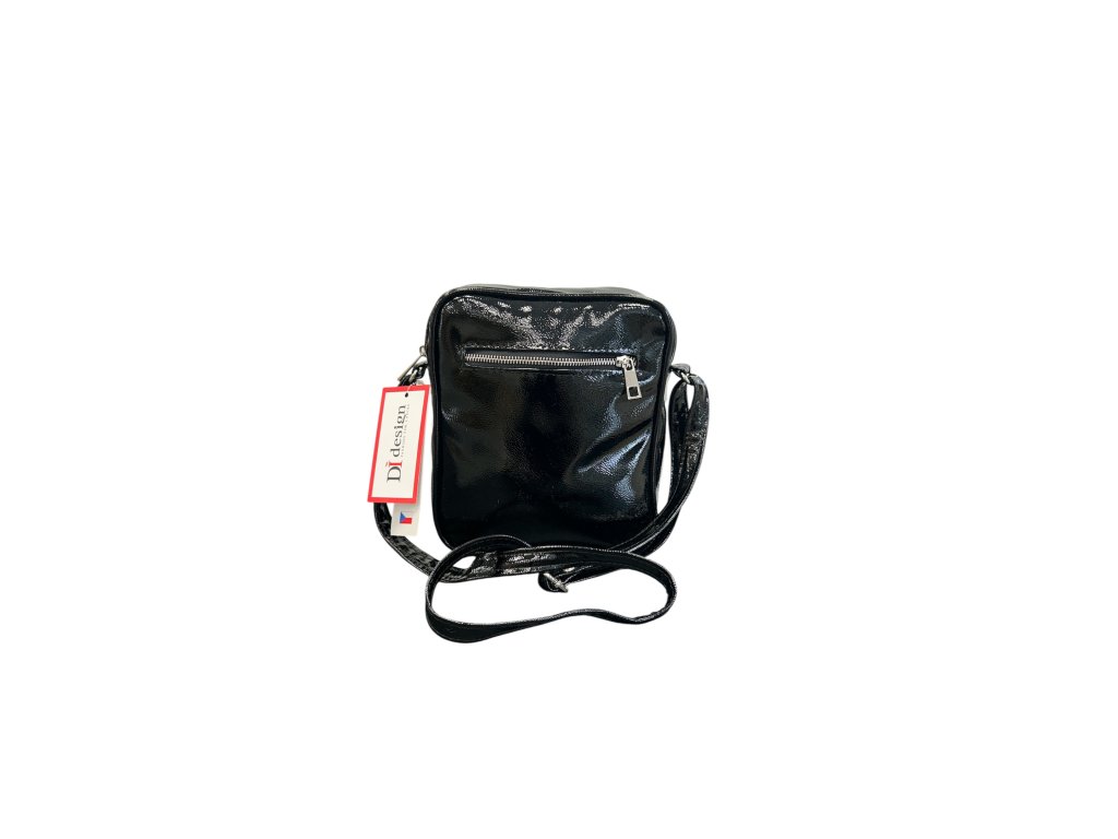 Tato černá crossbody kabelka Di Design z kvalitní syntetické imitace kůže je dokonalým spojením elegance a praktičnosti. Lesklý povrch s jemným prošíváním působí moderně a nadčasově, zatímco stříbrné logo DI na přední straně dodává kabelce luxusní vzhled.