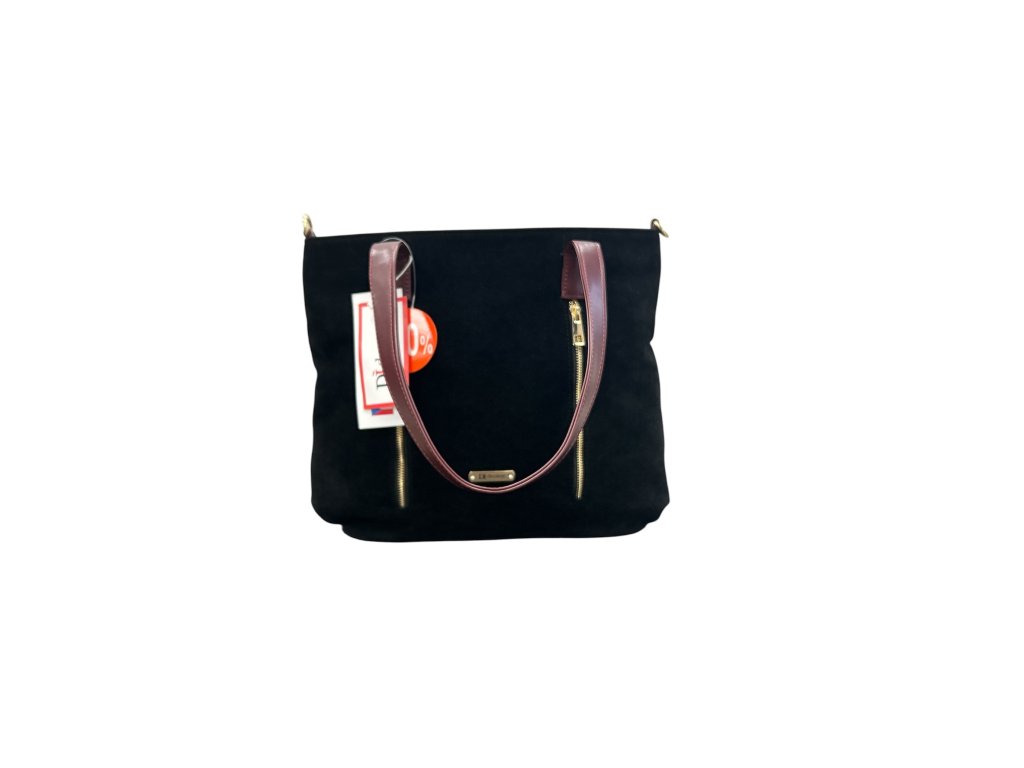 Elegantní černá kabelka Di Design z jemného syntetického semiše s výraznými zlatými zipy a vínovými uchy. Stylová, prostorná a ideální pro každý den.