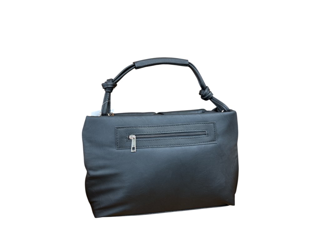 Kabelka má hlavní kapsu na zip, menší zadní kapsu na drobnosti a pohodlné ucho doplněné ozdobnými uzly.