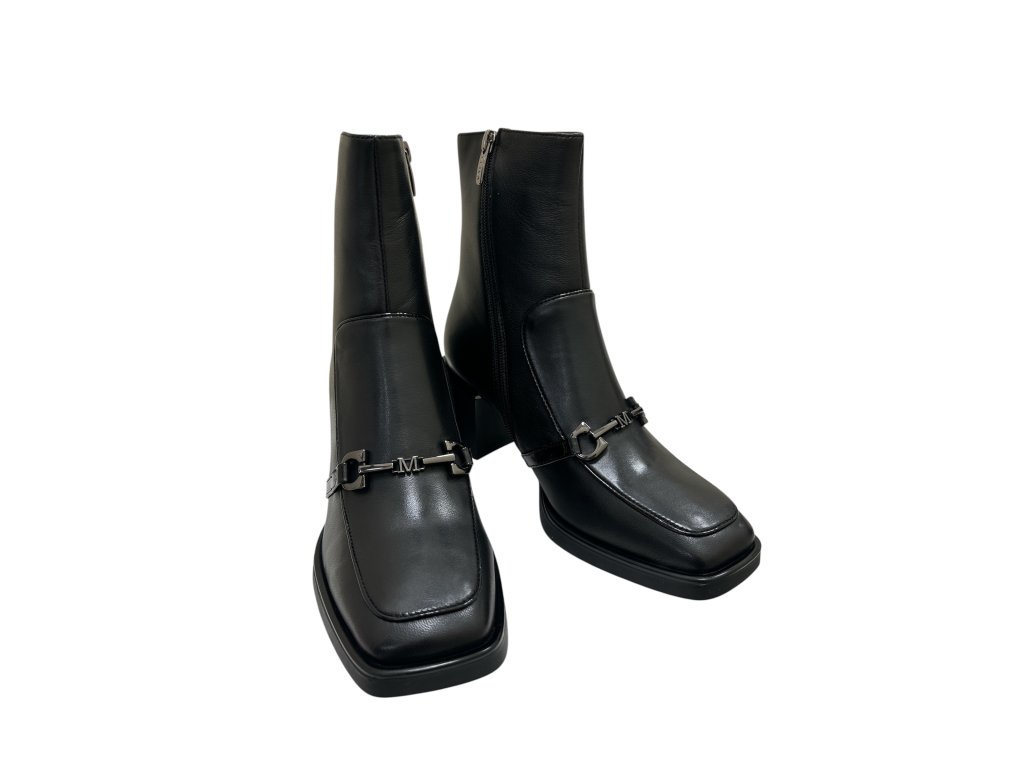 Design zaujme hranatou špičkou a decentní kovovou přezkou s písmenem “M”, která dodává botám luxusní charakter.