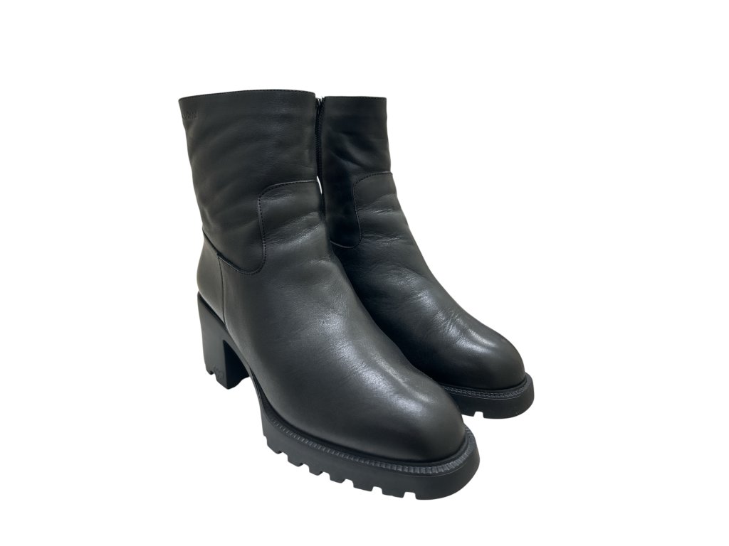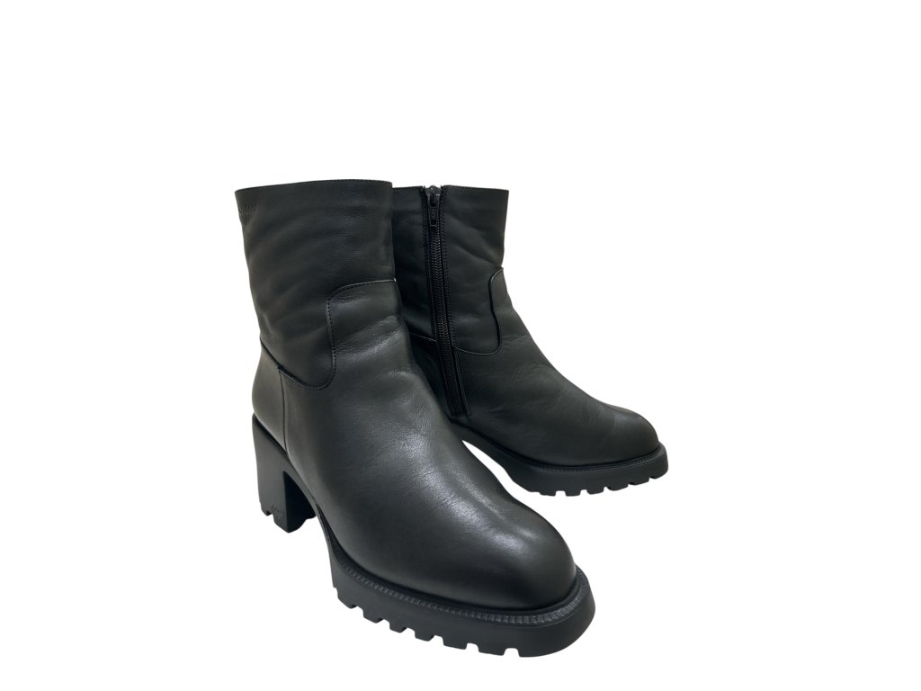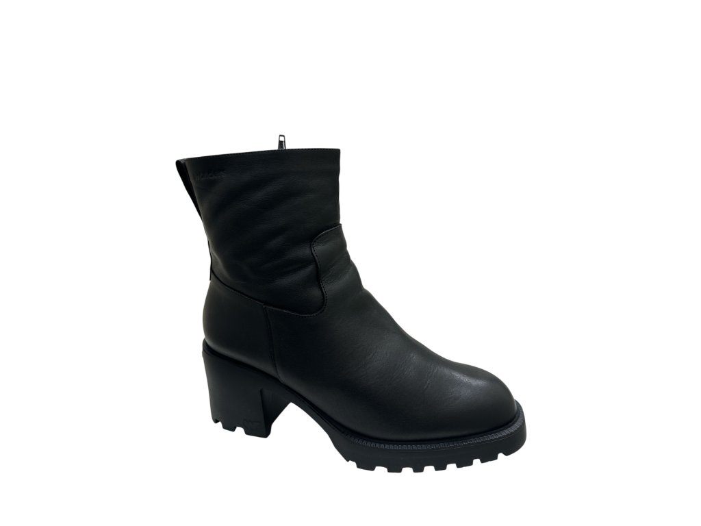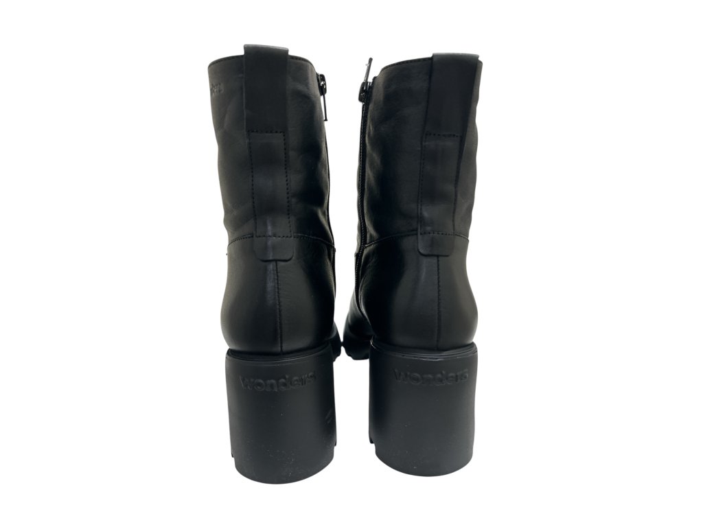 Stylové černé kožené kotníkové boty WONDERS s hrubší podešví a stabilním podpatkem. Dokonalá kombinace elegance, komfortu a nadčasového stylu.
