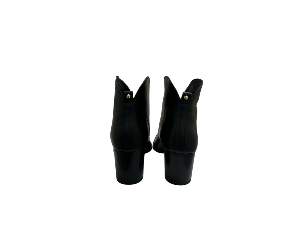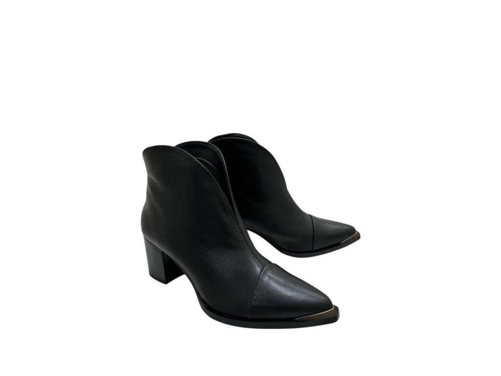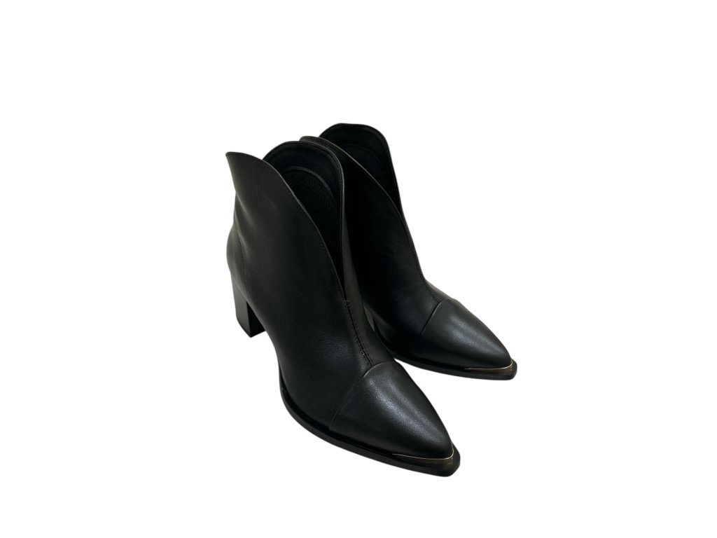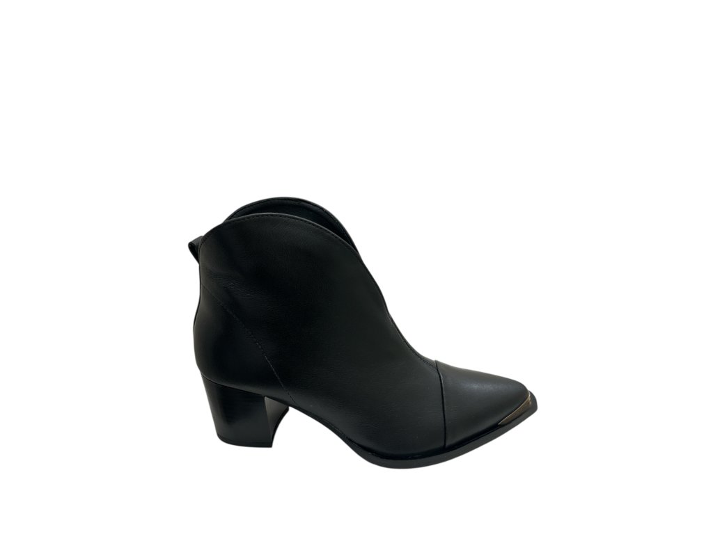 Stylové černé kotníkové boty Di Design s elegantním špičatým tvarem a kovovým detailem na špičce. Vyrobené z kvalitní kůže, s pohodlným podpatkem. Ideální k šatům, kalhotám i elegantním outfitům.