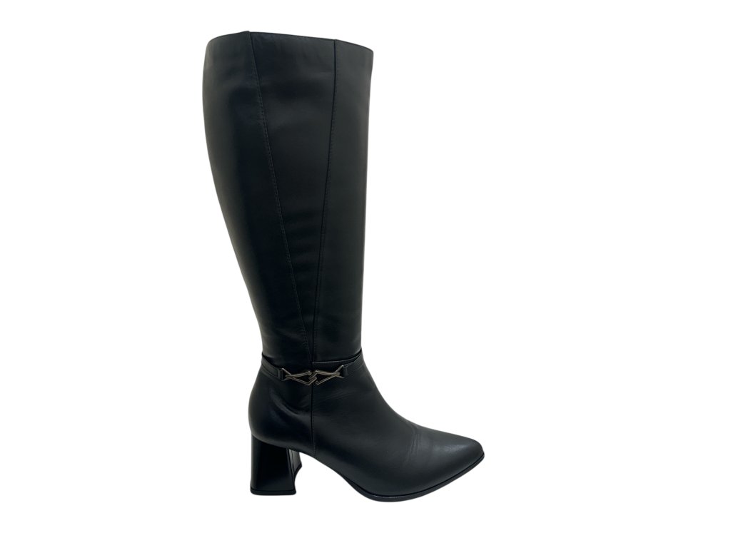 Elegantní dámské kozačky Di Design z kvalitní pravé kůže s pohodlným blokovým podpatkem. Stylová kovová aplikace, praktický zip po celé vnitřní straně a nadčasový design vhodný ke každodennímu nošení i do práce.