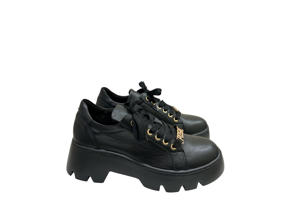 Moderní černé polobotky na platformě se zlatým detailem POSH pro stylový každodenní look.