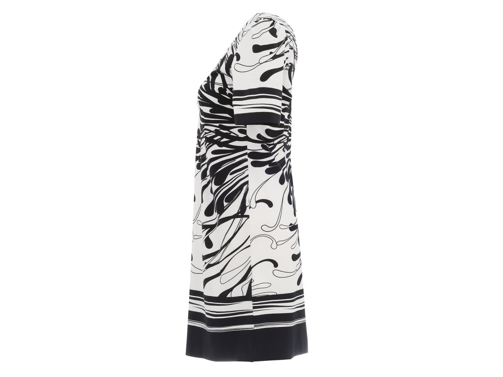Černobílé šaty Dolcezza s moderním vzorem a lichotivým střihem. Stylový kousek, který podtrhne vaši eleganci a sebevědomí.