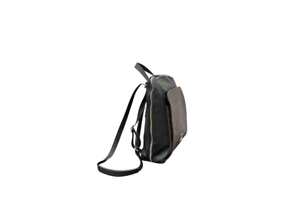 Stylový batoh v kombinaci černé a hnědé barvy, který spojuje elegantní vzhled s praktickým využitím pro každodenní nošení.
