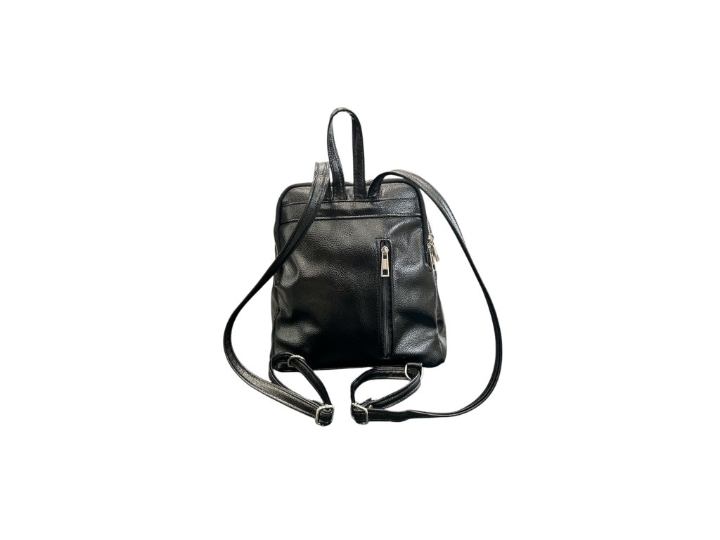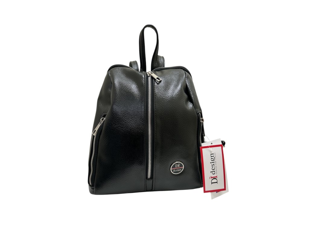 Stylový černý batoh Di Design z kvalitní syntetické napodobeniny kůže nabízí moderní vzhled, pohodlné nošení a praktické uspořádání kapes. Ideální pro každodenní využití ve městě i do práce.