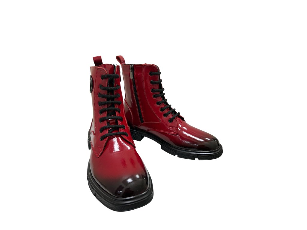 Dámské kotníkové boty GUERO v sytě červené barvě s lesklým povrchem přinášejí moderní městský styl s nádechem elegance.