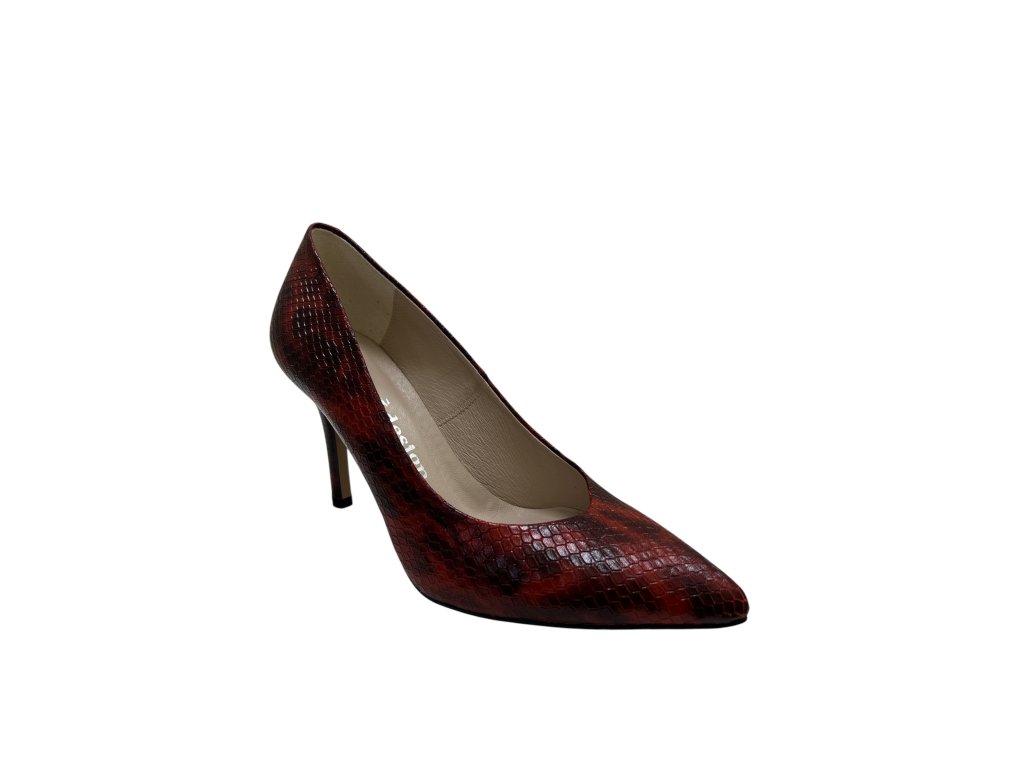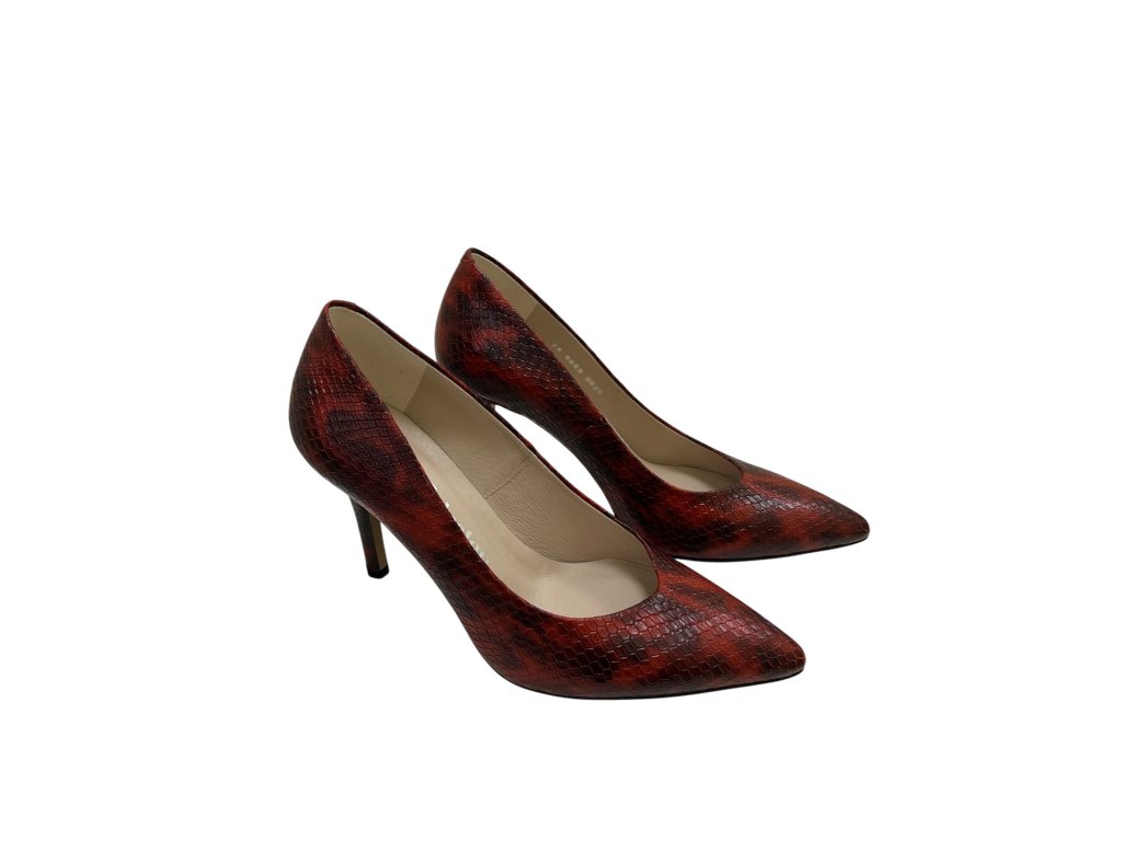 Dámské červené lodičky v hadím vzoru spojují eleganci, styl a ženskost. Výrazný design v odstínech červené dodává botám jedinečný charakter. Vysoký, štíhlý podpatek opticky prodlouží nohy a zvýrazní ženskou siluetu.