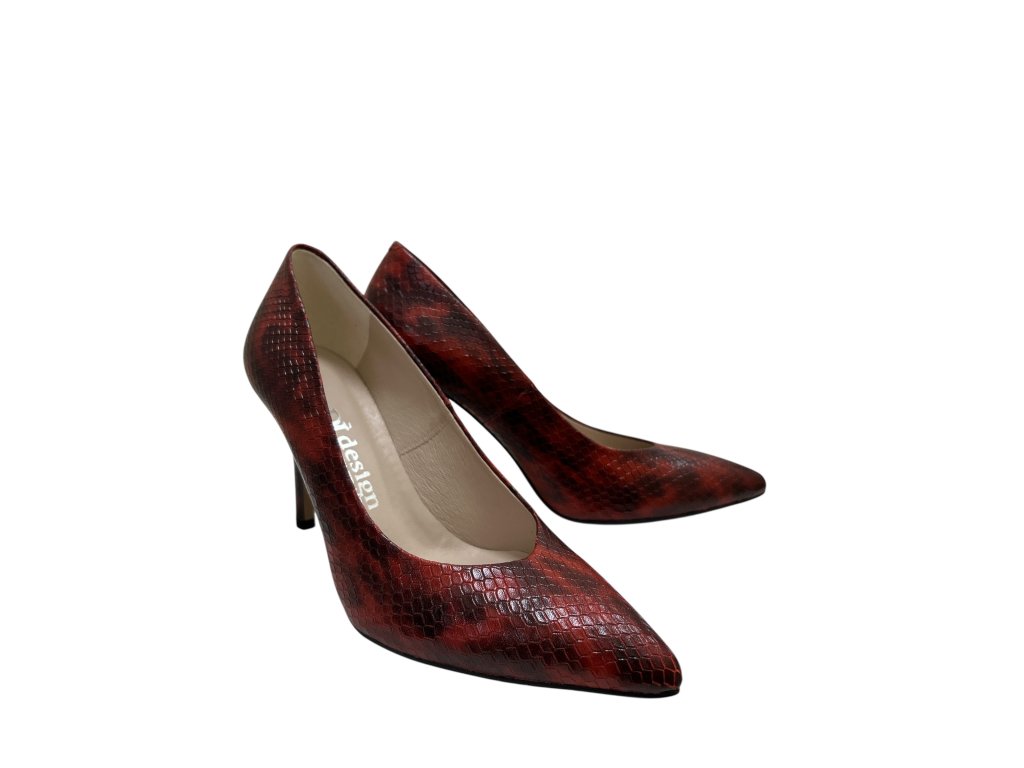 Dámské lodičky Dì Design zaujmou svým hadím vzorem v kombinaci červených a černých tónů, které působí sebevědomě a stylově.