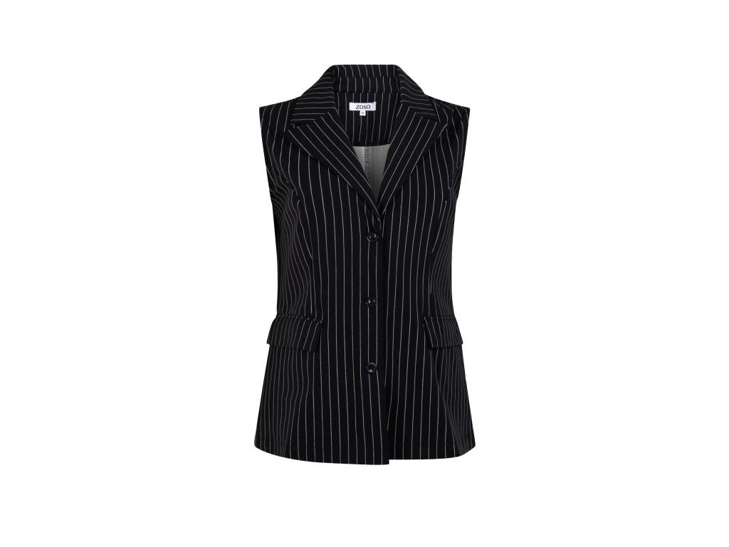 Elegantní tmavě modrá vesta ZOSO s jemným proužkovaným vzorem je stylovým kouskem pro moderní a sebevědomý outfit. Skvěle se hodí k kalhotám, sukním i šatům a dodá každému looku sofistikovaný nádech.