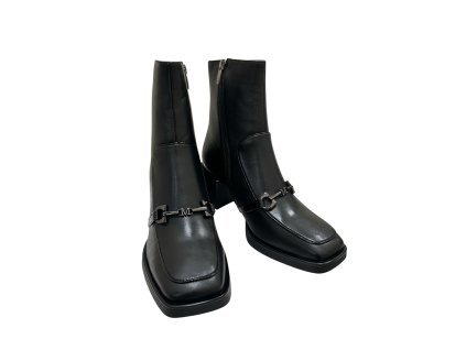 Černé kožené kotníkové boty s kovovou přezkou s písmenem “M"