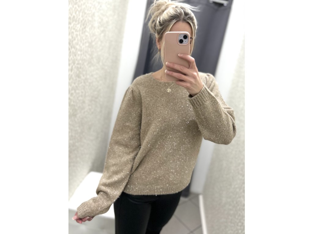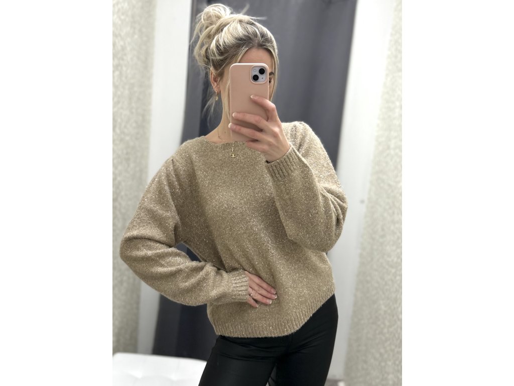 Elegantní dámský pletený svetr s jemným třpytivým efektem, který dodá outfitu nádech luxusu a zároveň zajistí pohodlí při každodenním nošení.