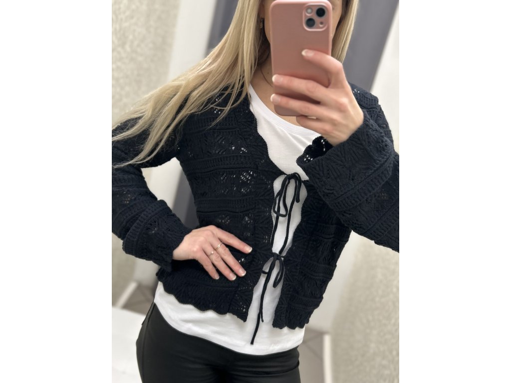 Přední zapínání na šňůrky podtrhuje ženský charakter modelu a umožňuje variabilní styling podle nálady. Dlouhé rukávy a pružný materiál zajišťují pohodlí při celodenním nošení. Kardigan je ideální volbou pro jarní i letní vrstvení.