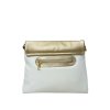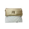 Elegantní bílá kabelka v kombinaci se zlatou barvou a stylovým prošíváním v přední části kabelky
