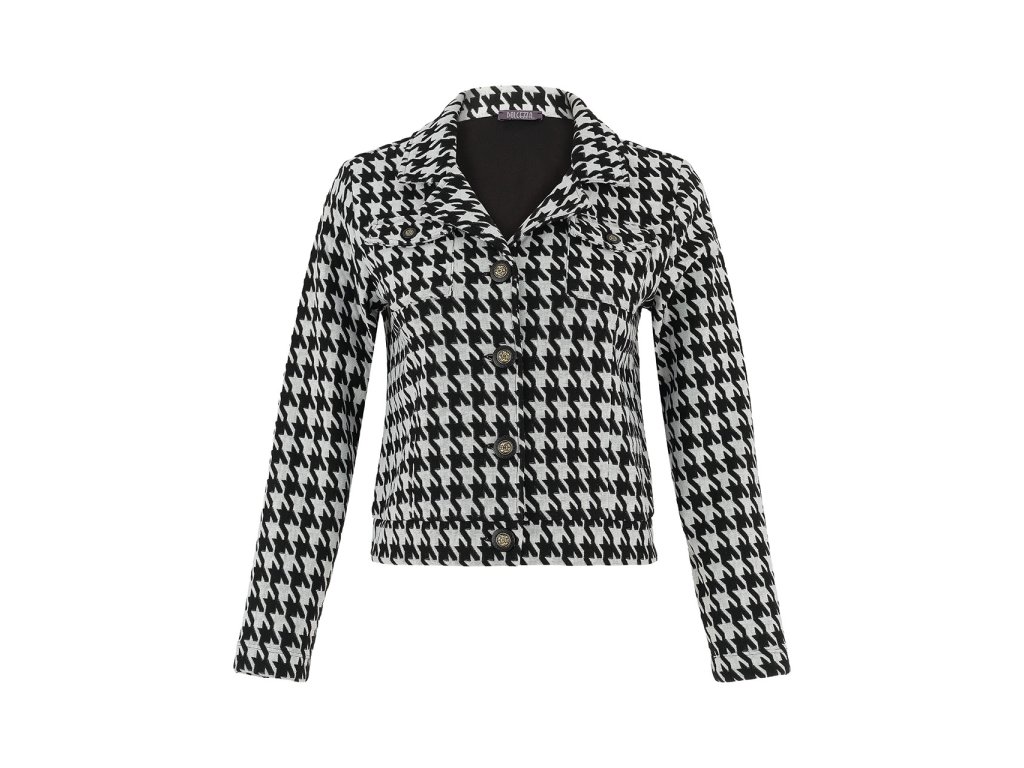 Elegantní kabátek Dolcezza v černobílém pepito vzoru s knoflíkovým zapínáním, příjemným pružným materiálem a nadčasovým střihem pro každodenní styl.