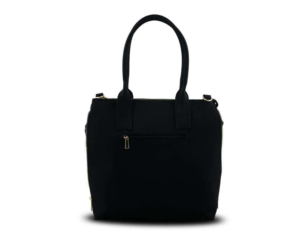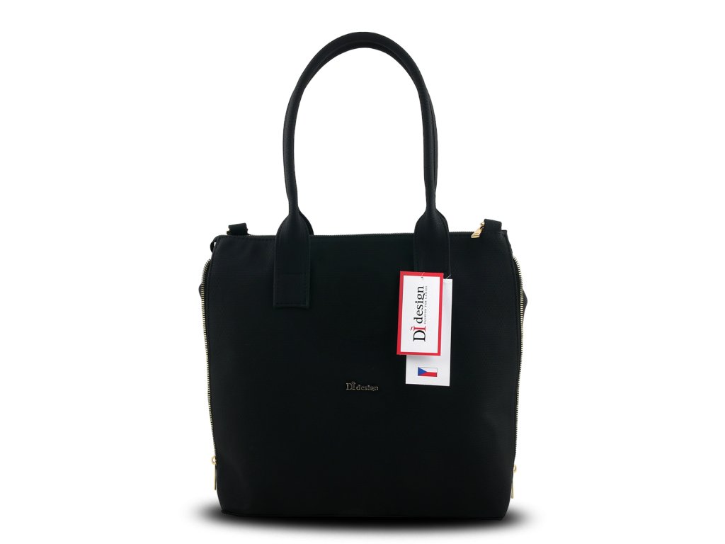 Kabelka značky Dí Design od české návrhářky Jany Dapecí. Prostorná kabelka v černé matné barvě krásně doplní outfit a díky zlatým zipům mu dodá to právě. Pomocí postranních zipů lze kabelku rozšířit. Na zadní straně kabelky můžeme najít jednu menší kapsu na zip. Uvnitř kabelky se dále nachází dvě menší kapsy na zip a jedna menší bez zipu. Ke kabelce je možné pomocí karabin připnout delší popruh o délce 120cm. Materiál syntetický. Rozměry 34x35x12cm
