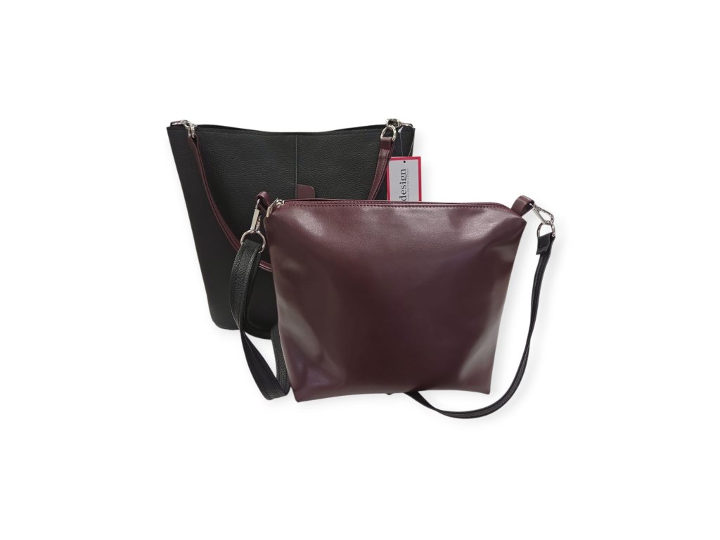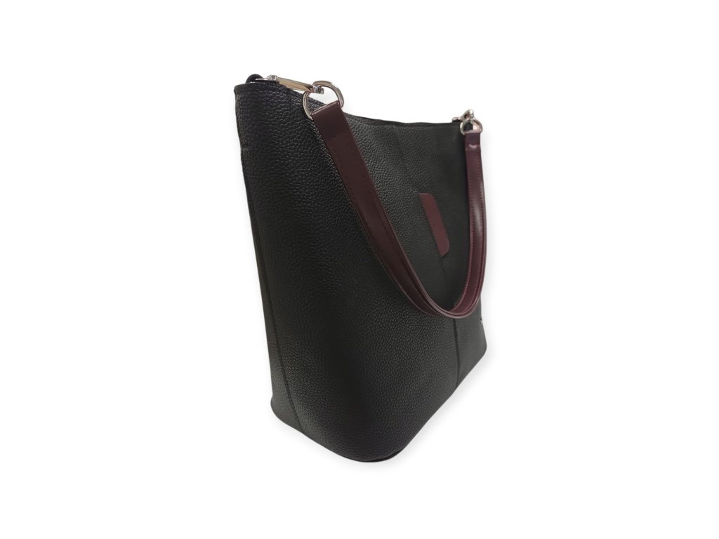 Elegantní kabelka Di Design v kombinaci černé a vínové barvy z kvalitní syntetické imitace kůže. Stylový doplněk pro každý den – do práce i do města. Součástí je vyjímatelná vnitřní taška, kterou lze nosit samostatně přes rameno nebo jako crossbody kabelku.