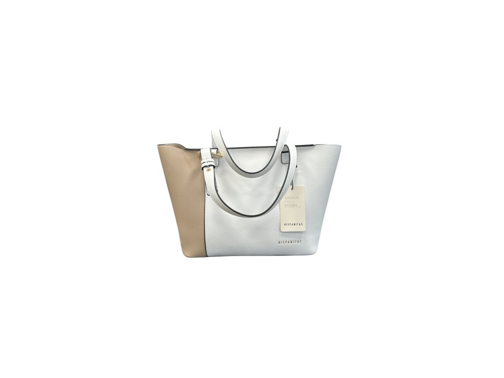 Elegantní dvoubarevná kabelka Hispanitas v kombinaci bílé a béžové barvy je nadčasovým doplňkem pro každý den. Minimalistický design, pevný tvar a praktická velikost z ní dělají ideální kabelku do práce i na volný čas.