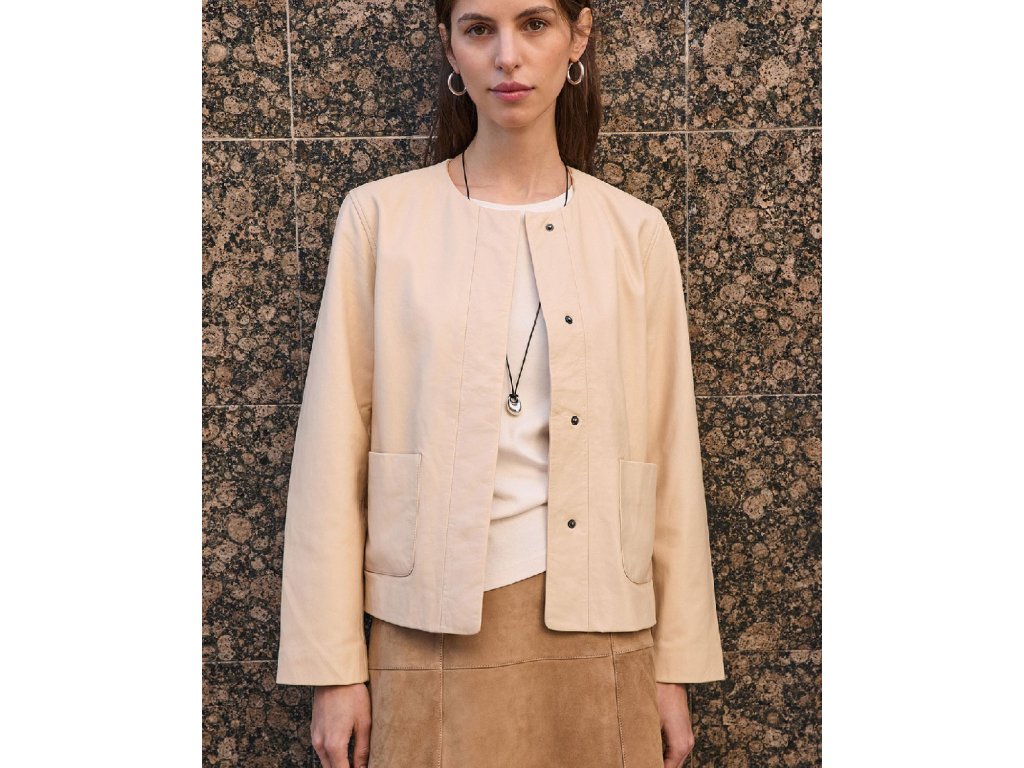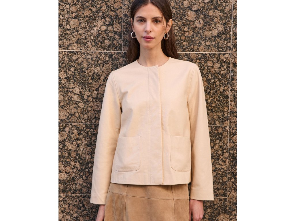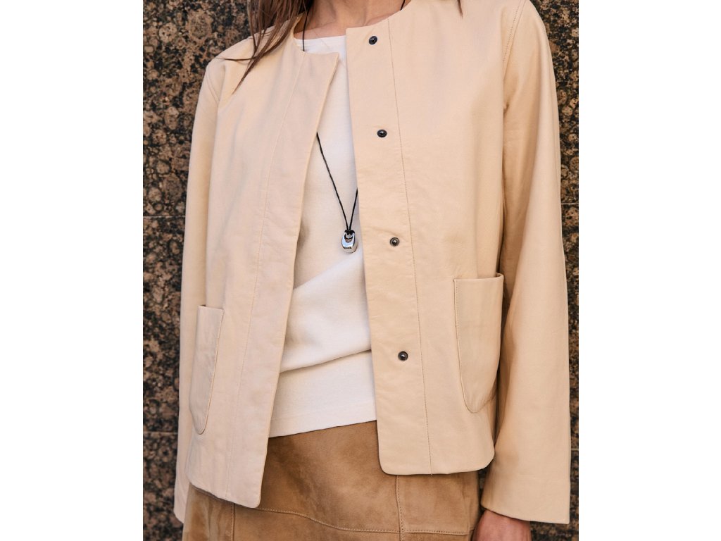 Elegantní krémová kožená bunda Yerse s čistým minimalistickým designem, která se skvěle hodí pro každodenní nošení i elegantnější kombinace.
