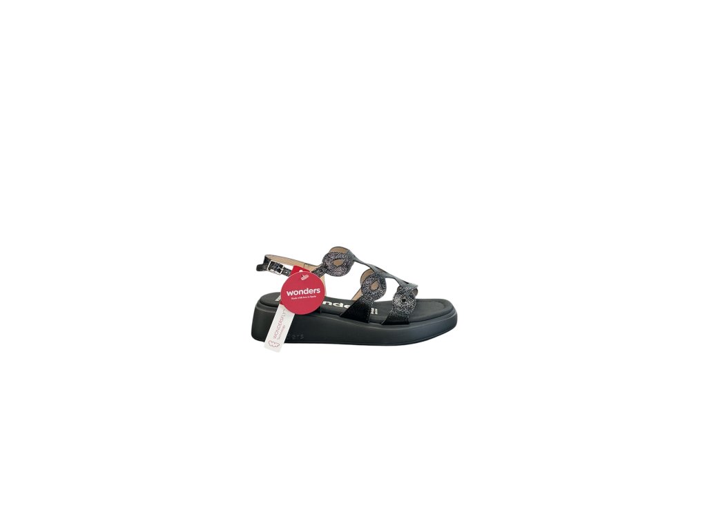 Moderní dámské sandály Wonders v elegantní černé barvě představují perfektní spojení komfortu, originality a nadčasového stylu.