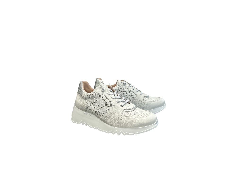Elegantní bílé kožené tenisky Wonders s perforovaným svrškem a lehkou platformovou podrážkou. Nadčasový model, který spojuje komfort a moderní design.