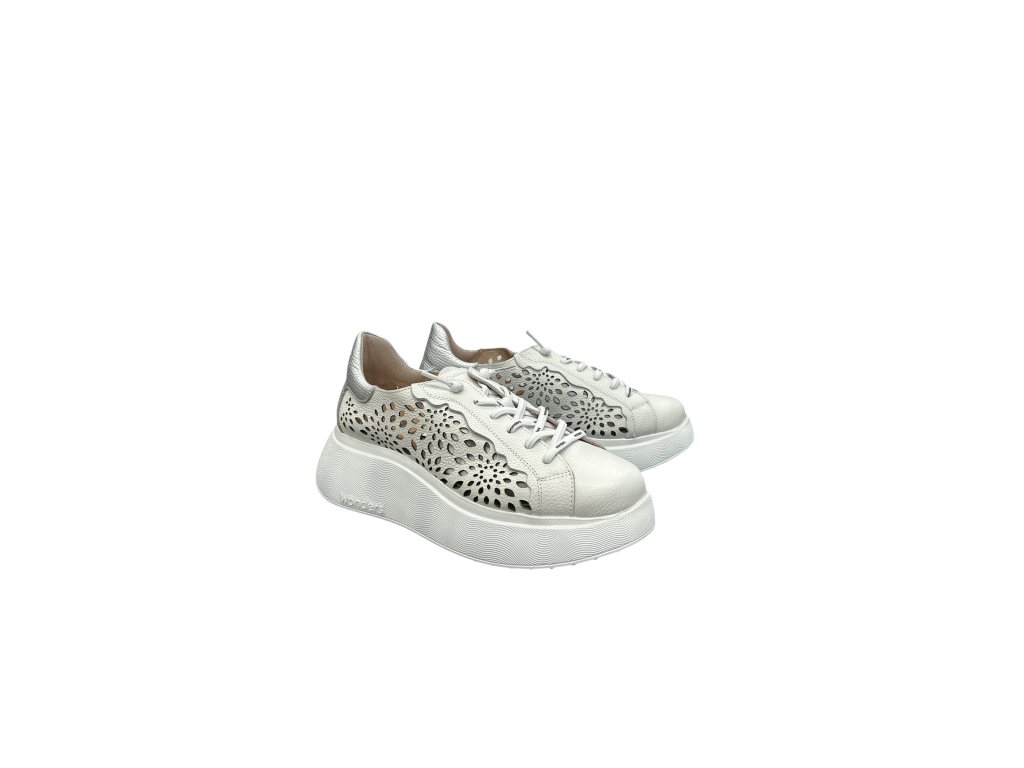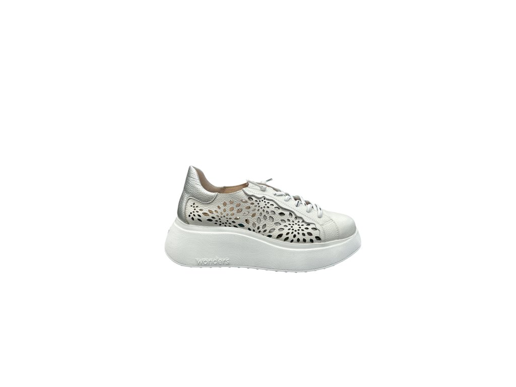 Elegantní kožené tenisky Wonders v bílé barvě s efektním perforovaným vzorem a pohodlnou platformou. Lehký a prodyšný model pro stylové každodenní nošení.
