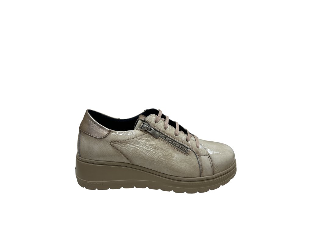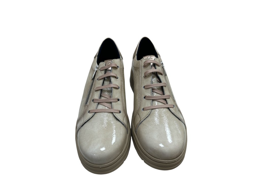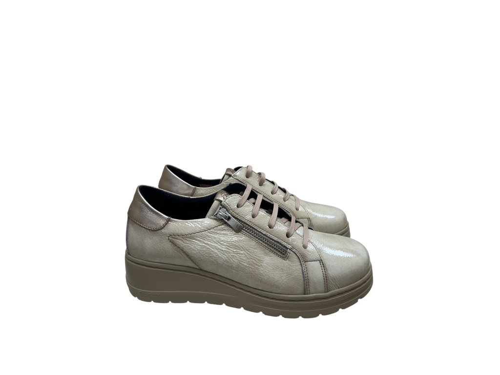 Stylové dámské béžové tenisky Fluchos kombinují moderní design s maximálním pohodlím. Lesklý povrch, šněrování s bočním zipem a měkká podešev zaručují komfort na celý den.