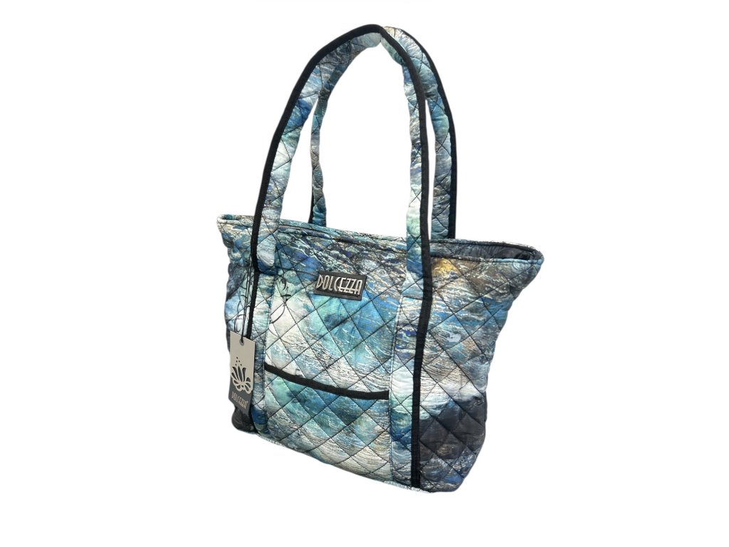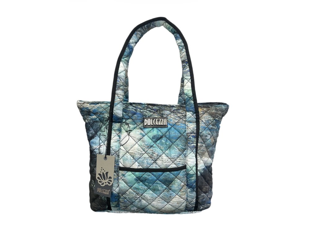 Velká prošívaná taška Dolcezza s názvem potisku „Život je příliš krátký“ je lehká, stylová a praktická. Ideální na rameno i do ruky.