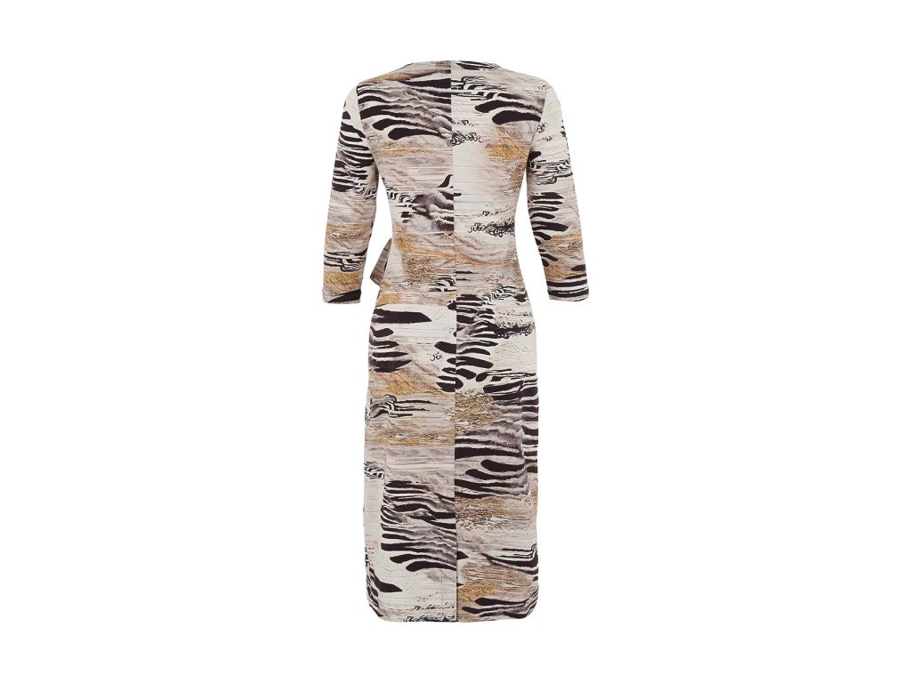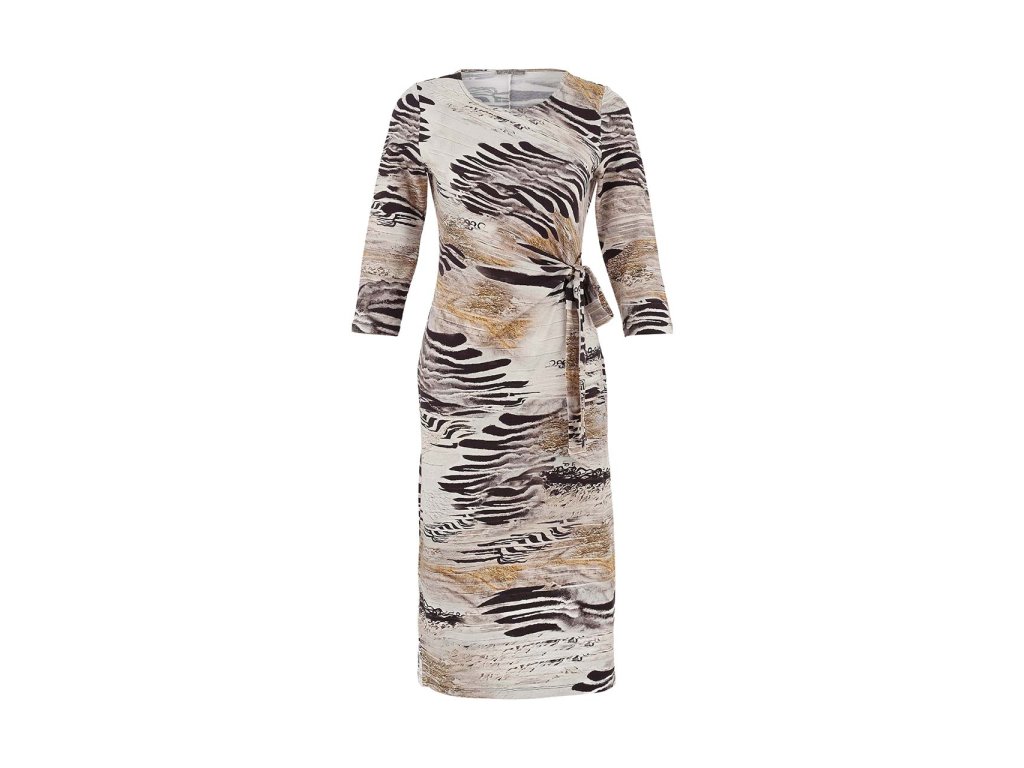 Elegantní šaty Dolcezza s výrazným uměleckým motivem a stylovým bočním vázáním, které krásně zvýrazní ženskou siluetu.