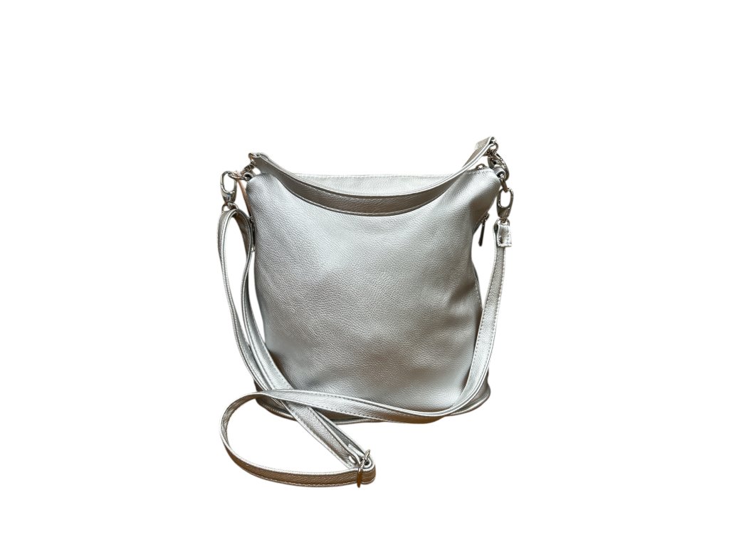 Elegantní stříbrná kabelka v moderním metalickém provedení, která dodá šmrnc každému outfitu. Praktická, lehká a ideální pro každodenní nošení – s možností nosit ji přes rameno i crossbody.