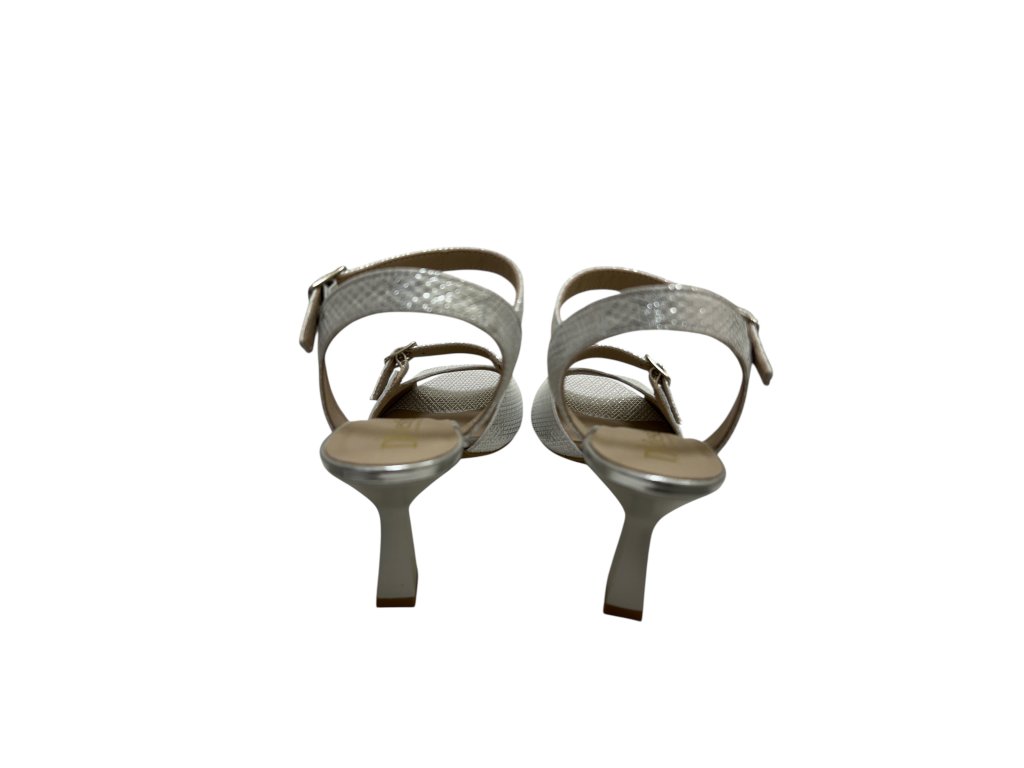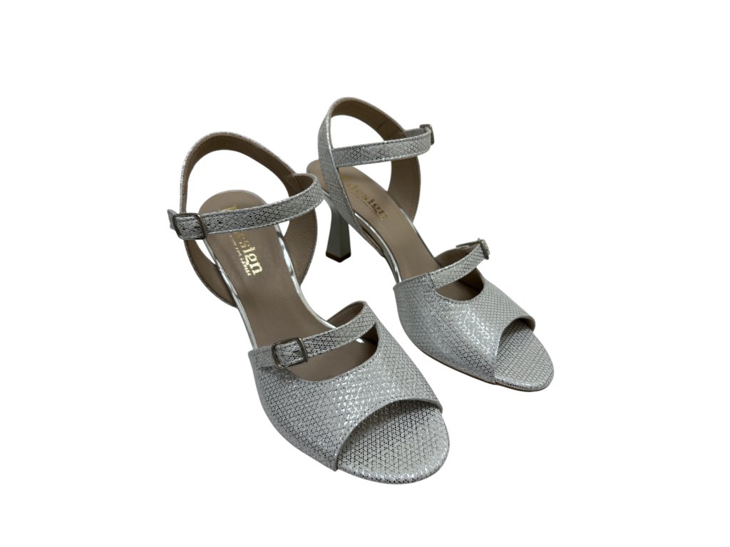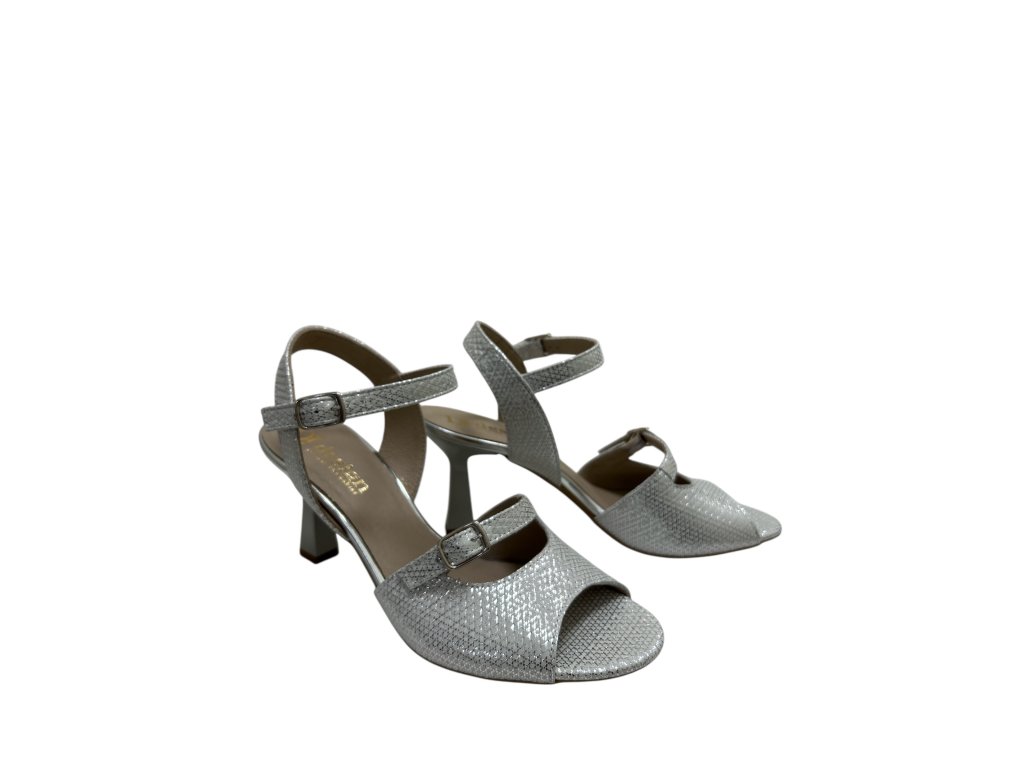 Elegantní stříbrné páskové lodičky s jemným leskem působí stylově a žensky.