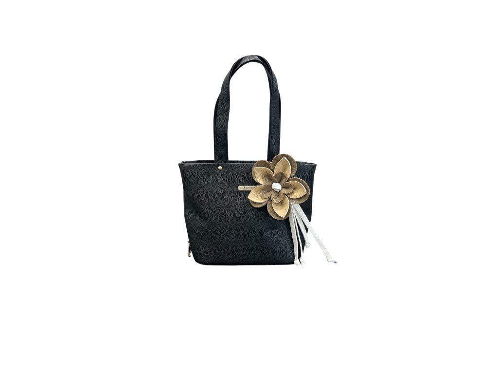 Pokud hledáš doplněk, který je praktický, ale zároveň nechceš, aby působil obyčejně, tahle černá kabelka s květinou je nádherná volba. Je vyrobená ze syntetického materiálu s jemnou strukturou, která působí hezky upraveně a elegantně. Díky pevnému tvaru si drží krásnou siluetu a na rameni vypadá velmi vkusně.