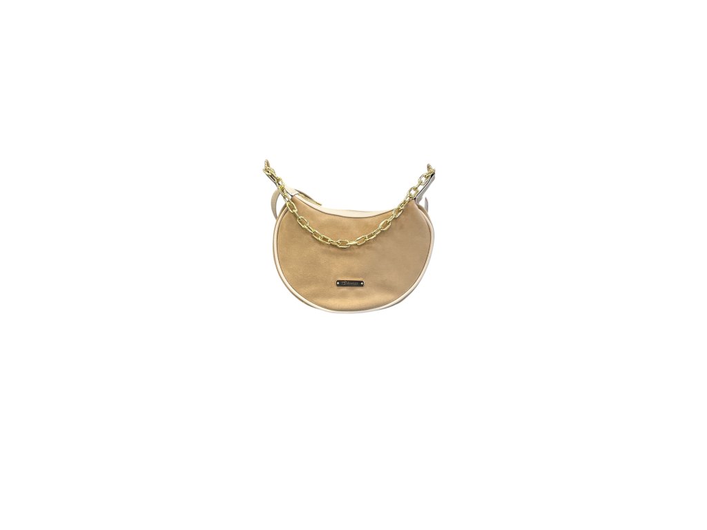 Elegantní dámská kabelka ve světle hnědé barvě zaujme na první pohled svým moderním půlkruhovým tvarem a výrazným zlatým řetízkem, který dodává kabelce luxusní a módní vzhled.