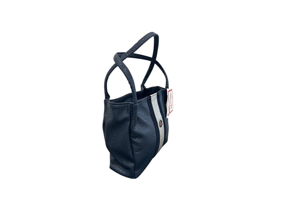 Tmavě modrá kabelka se stříbrným pruhem