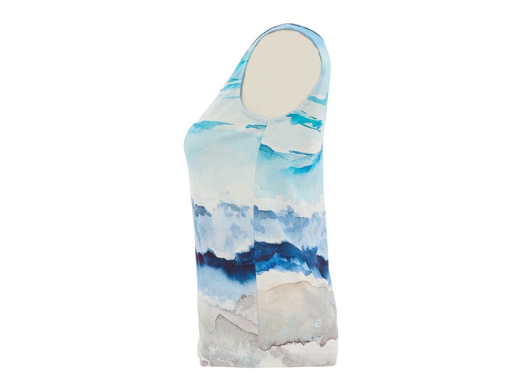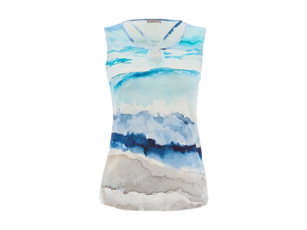 Elegantní dámský top Dolcezza s originálním akvarelovým potiskem v modro-pískových tónech, který působí svěže, žensky a velmi lehce.