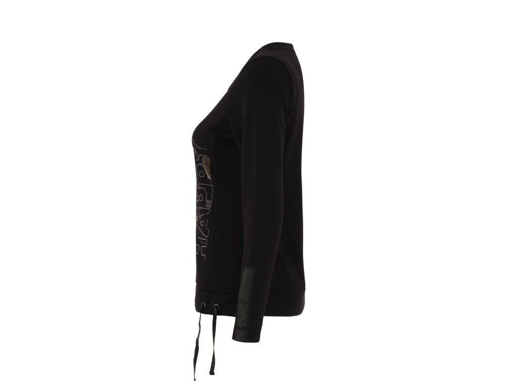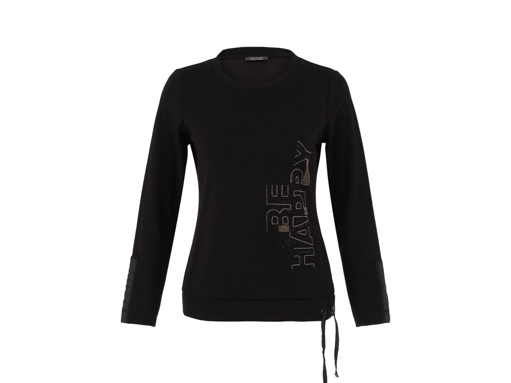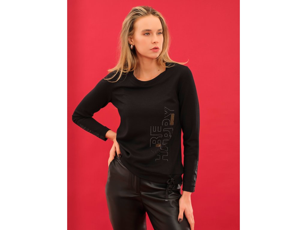 Stylové dámské triko Dolcezza v černé barvě zaujme elegantním designem a decentním nápisem s kamínky. Pohodlný, pružný materiál zajistí příjemné nošení po celý den.