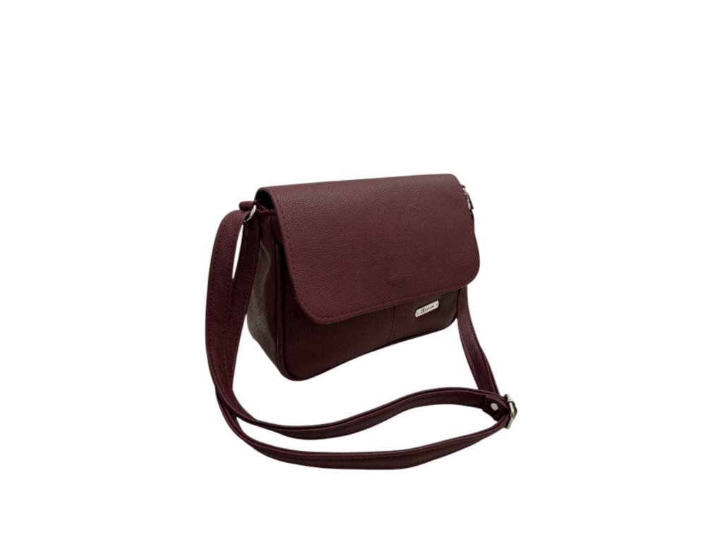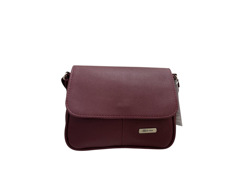Stylová vínová crossbody kabelka Di Design z kvalitní syntetické napodobeniny kůže. Praktický model s klopou, nastavitelným popruhem a dostatkem prostoru pro každodenní nezbytnosti.