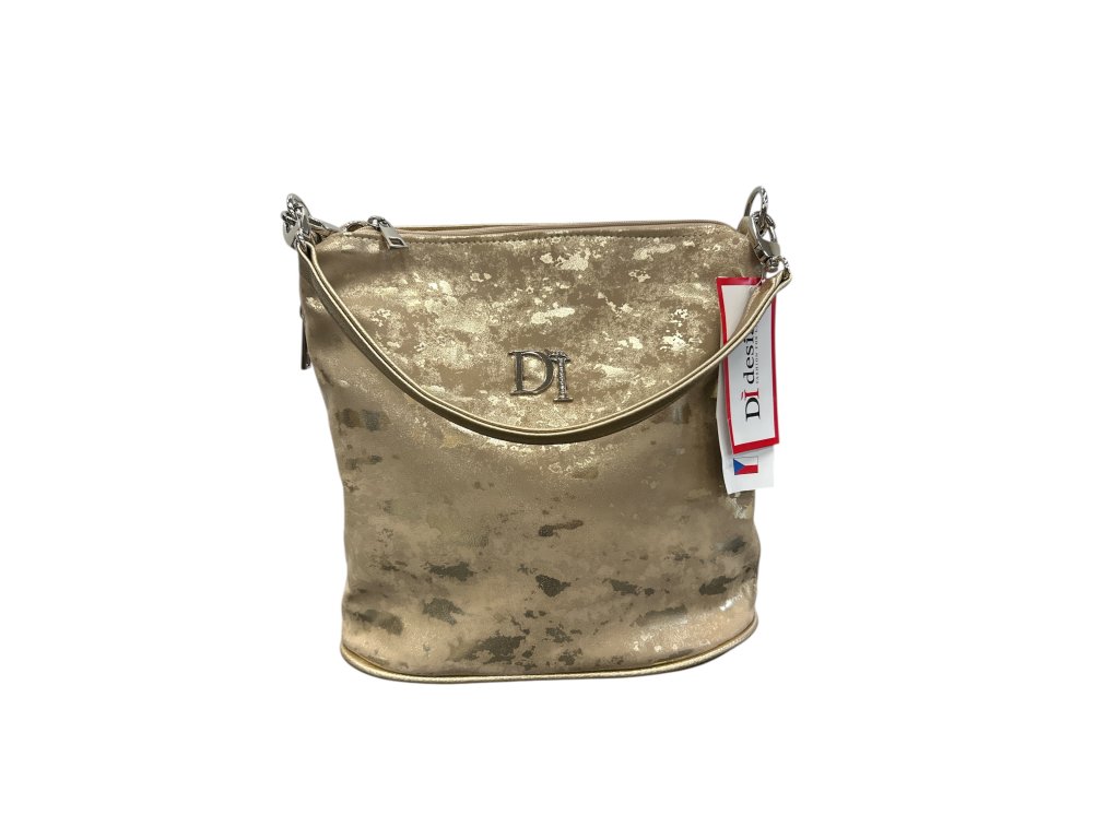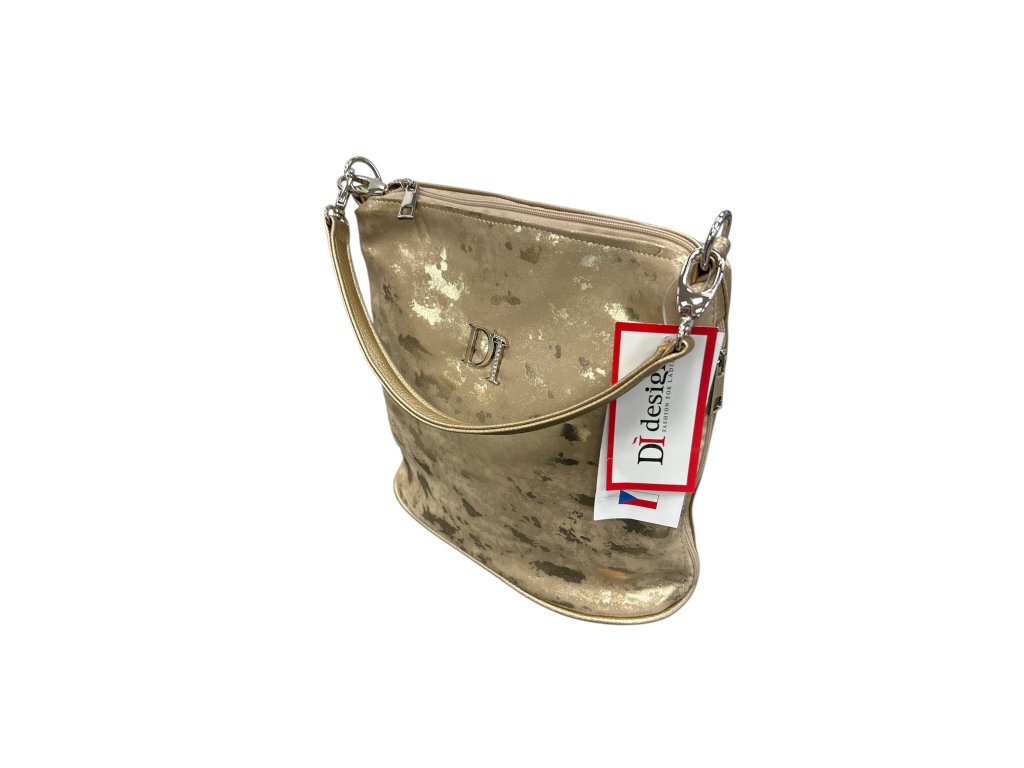 Elegantní zlatá kabelka Di Design je stylovým doplňkem pro každý den i slavnostní příležitosti. Má jemně lesklý efekt, pohodlné ucho a praktické zapínání na zip.