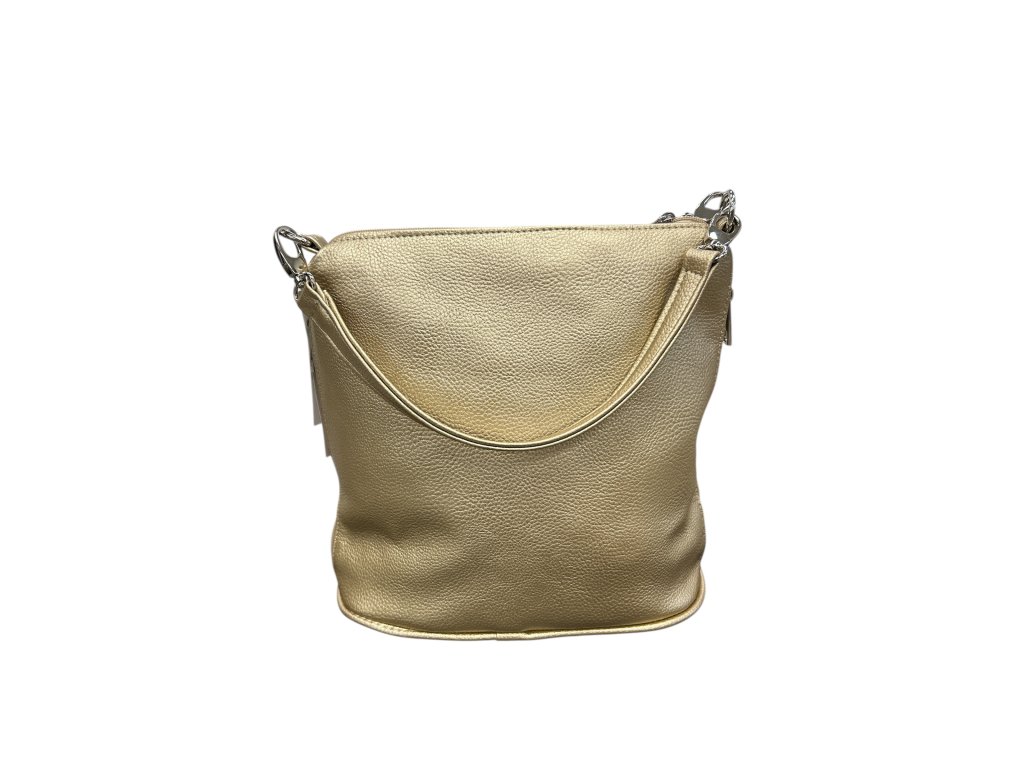 Tato módní kabelka v odstínu zlaté s mramorovaným efektem je výrazným a přitom vkusným doplňkem. Díky praktickému tvaru nabízí dostatek prostoru pro všechny Vaše nezbytnosti. Kabelka je vyrobena ze syntetické napodobeniny kůže, která je odolná, snadno se udržuje a příjemně měkká na dotek.